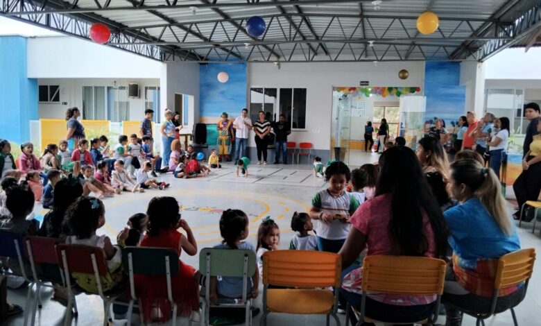 A recepção das crianças contou com atividades lúdicas, música e recreação, marcando o início do ano letivo com um ambiente acolhedor e festivo.